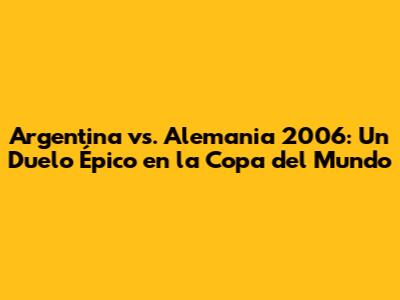 隆Hola, fan谩ticos del f煤tbol! Si son como yo, seguramente recuerdan con emoci贸n el Argentina vs. Alemania 2006, un partido de cuartos de final en la Copa del Mundo que nos mantuvo al borde del asiento. Prep谩rense para un viaje en el tiempo, porque vamos a revivir juntos ese encuentro inolvidable. Analizaremos cada detalle, desde las alineaciones hasta los momentos clave que definieron el destino de ambos equipos. 隆Es hora de sumergirnos en la historia del f煤tbol!