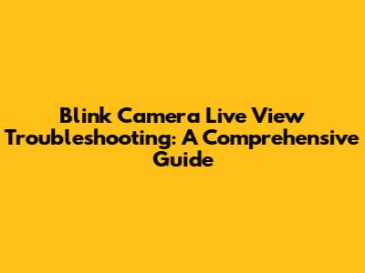 Blink Camera Won't Show Live View: Quick Fixes
