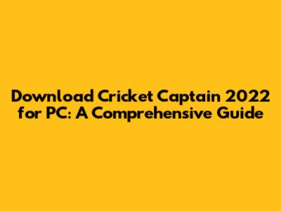 Download Cricket Captain 2022 For PC: A Comprehensive Guide