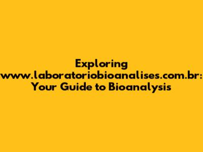 Exploring Www.laboratoriobioanalises.com.br: Your Guide To Bioanalysis