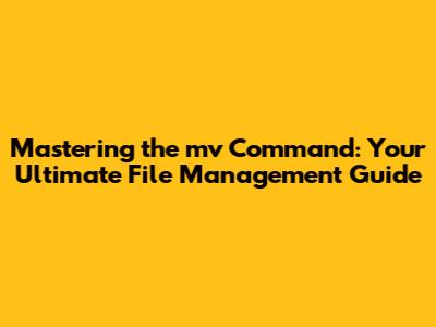 Mastering The 'mv' Command: Your Guide To File Management