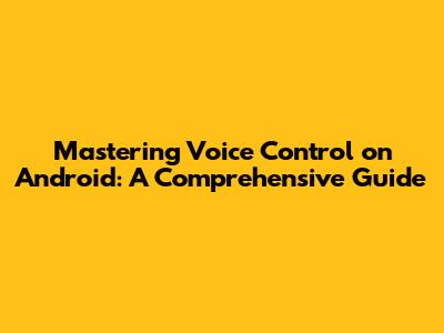 Mastering Voice Control On Android: A Comprehensive Guide