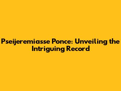 Pseijeremiasse Ponce: Unveiling The Intriguing Record