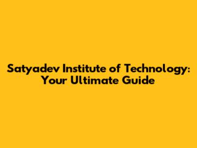 Satyadev Institute Of Technology: Your Ultimate Guide