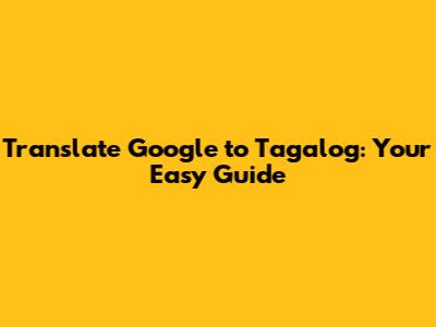 Translate Google To Tagalog: A Simple Guide