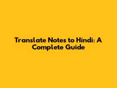 Translate Notes To Hindi: A Complete Guide