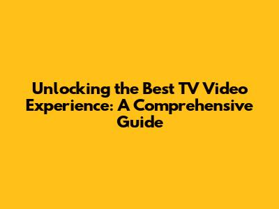 Unlocking The Best TV Video Experience: A Comprehensive Guide